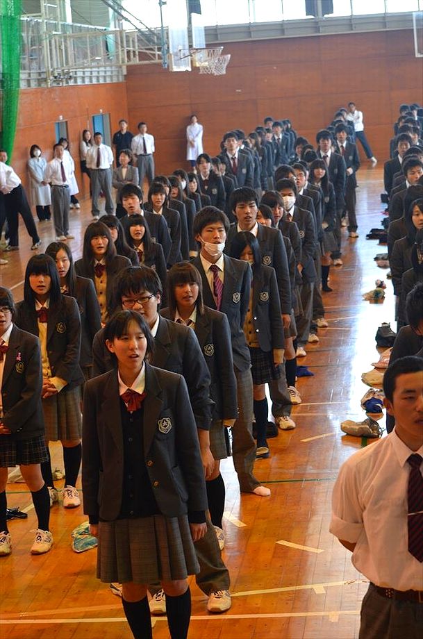 その後、生徒代表と校長の私が激励のあいさつを行いました。次に、関東大会での抱負や壮行会へのお礼が代表の選手からありました。最後に、硬式野球部の諸君による選手への激励のエールと吹奏楽部員の伴奏のもと、全員で校歌の斉唱を行いました。